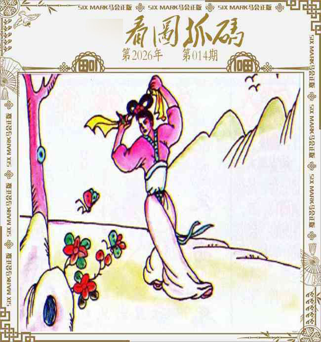 【抓码图】014期:图中一女子在翩翩起舞,旁边2和蝴蝶和2朵花,解鸡羊兔蛇马龙。